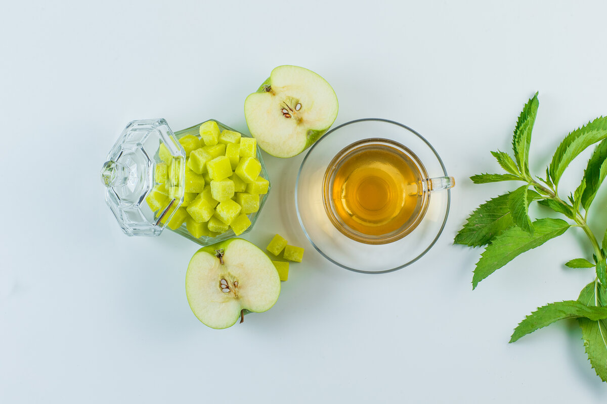Brew a cup of green or black tea and add fresh apple slices and lemon juice. You can also garnish with a thin slice of lemon or even a few lemon zest shavings for added flavor.