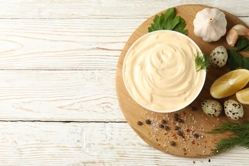 1. Mix mayonnaise, minced garlic, lemon juice, and olive oil in a bowl.