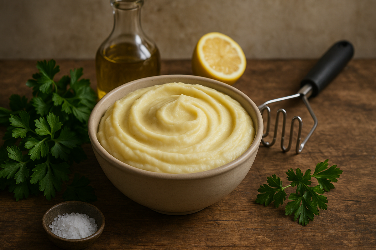 Use Warm Ingredients: When adding olive oil, broth, and plant-based milk, make sure these ingredients are warmed up slightly. This helps them blend more easily with the potatoes and ensures a smoother texture.